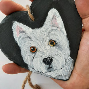 Take a look through the many slate hearts I have painted. I wanted to offer something unique with a pet/animal portrait painted on it. These make a beautiful gift and can be put outside although I would bring them in when freezing!